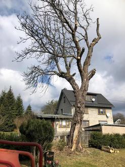 Die Kastanien auf dem Schmiedefelder Friedhof, die in den letzten Jahren unter der Trockenheit sehr gelitten haben, sind im Auftrag der Stadtverwaltung soweit zurückgeschnitten worden, damit keine Gefahr, durch herabfallende trocken Äste, für die Besucher des Friedhofes, besteht. Irgendwie sehen die Bäume jetzt bizzar aus und ich glaube auch nicht, dass diese sich erholen, aber das wird sich zeigen.