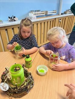 Dabei wendeten sie altbewerte Fröbeltechniken - flechten von Naturmaterialien an. Die getupften Gläser stellen die Wahrzeichen der Stadt dar.
