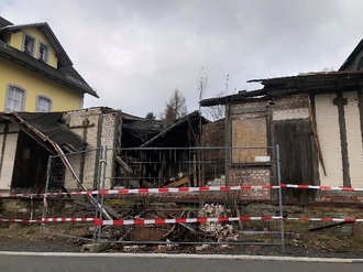 Einen Schandfleck bietet der Anbau unseres Bahnhofsgebäudes. Das Hauptgebäude wurde liebevoll als Wohnhaus wiederhergerichtet. Dagegen blieb der Anbau im Besitz der Bahn und verfiel zusehends. Nach mehreren Anschreiben an die Deutsche Bahn, das ging über mindestens zwei Jahre, hat die Bahn zugesagt, diesen Anbau zu entfernen. Ich hoffe, dass beim Erscheinen dieses Höhenpanoramas, mit den Abrissarbeiten begonnen worden ist bzw. diese schon abgeschlossen sind.