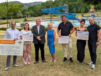 Ursprünglich wollte jeder Partner die Aktion eine Woche lang unterstützen. Da so aber lediglich vier Ferienwochen zusammengekommen wären, entschieden die Unternehmer bei der Übergabe der Spendenschecks am 23. Juni im Saalfelder Freibad kurzentschlossen, auch die verbleibenden zwei Wochen zu übernehmen. Somit erhöht sich der jeweilige Sponsoringbetrag auf 3.750 Euro.