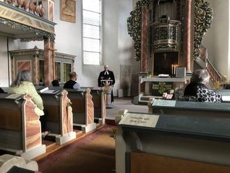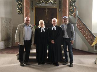 Am 03.08.2025 fand der letzte Gottesdienst mit Oberpfarrer Gerd Fröbel in der Schmiedefelder Kirche St. Michael statt. Er und seine Frau Esther, die seit Januar 2016 die Kirchgemeinde Schmiedefeld betreuen, gehen Ende August in ihren wohlverdienten Ruhestand. Kirchenältester Michael Hopfe bedankte sich beim Pfarrerehepaar Fröbel für die jahrelange gute Zusammenarbeit und die schöne Zeit, die man miteinander verbringen durfte. Mit einem extra einstudierten Segenslied wurde das Pfarrerehepaar hier in Schmiedefeld verabschiedet. Im Namen des Saalfelder Ortsteiles Schmiedefeld bedankte ich mich für die jahrelang gute Zusammenarbeit mit einem kleinen Präsent. Oberpfarrer Fröbel stand für eine neue Zeit der Predigtgestaltung. Nicht mehr Buch und Zettel waren seine Unterlagen während des Gottesdienstes oder anderen Veranstaltungen. Nein, mit ihm zog Technik in die Kirche. Tablett und Musikbox unterstützten ihn und ließen Ausfälle von Orgel oder Organisten gut kompensieren. Auch seine Liedauswahl unterscheidet ihn von seinen Vorgängern. Zum letzten Gottesdienst ließ er Lieder wie "Ein bisschen Frieden" von Nicole oder "I have a dream" von ABBA vom Organisten spielen. Unvergessen sein Auftritt vor Jahren, zur Weihe der neuen Drehleiter vor dem Feuerwehrgebäude Schmiedefeld. Ein Staunen ging durch die Reihen der Gäste als Oberpfarrer Fröbel sein Tablett auspackte und seine Predigt zur Fahrzeugweihe von diesem abgelesen hatte. Das kannte so keiner der anwesenden Kameradinnen und Kameraden.