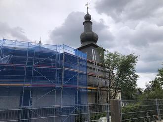 Das Dach des Kirchenschiffes der Schmiedefelder Kirche St. Michael wird repariert und zu einem Teil neu eingedeckt.