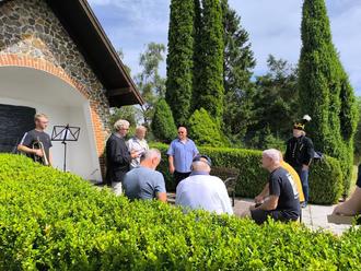 Kommen wir zu den aktuellen Themen der letzten zwei Monate. Traditionell zum Bergmannstag, jeden ersten Sonntag im Juli, treffen sich einige Bergleute der ehemaligen Eisenerzgrube Schmiedefeld an der Schmiedefelder Bergmannskapelle, um an ihre verstorbenen Kumpel zu gedenken und sich an die gemeinsame Zeit zu erinnern, die sie hier in Schmiedefeld in der Eisenerzgrube verbracht haben. Es sind nicht mehr viele Bergleute von damals am Leben aber es gibt sie noch und einige waren auch am Bergmannstag in Schmiedefeld erschienen. Henryk Krolak, der für diese Treffen in den letzten Jahren verantwortlich ist, begrüßte die Teilnehmer der Veranstaltung und freute sich, dass auch viele interessierte Gäste, darunter Kreis-, Stadt- und Ortsteilräte, die Einladung zum Treffen an der Kapelle wahrgenommen haben. Er sprach noch einmal über die Arbeit der damaligen Zeit und über das Ende des Bergbaues 1972 in Schmiedefeld. In meiner Funktion als Ortsteilbürgermeister von Schmiedefeld, begrüßte ich ebenfalls die anwesenden Bergleute und Gäste. Gratulierte den Bergleuten zu ihrem Ehrentag und richtete Grüße vom Saalfelder Bürgermeister Dr. Steffen Kania aus, der aus terminlichen Gründen nicht an der Veranstaltung teilnehmen konnte. Für ihn als Vertretung kam der Tiefbauamtsleiter der Stadt Saalfeld, Herr Uwe Neumann, der selbst ein aktives Mitglied im Bergbauverein Kamsdorf ist und sich auch sehr für die öffentliche Zugänglichkeit der Schmiedefelder Bergmannskapelle eingesetzt hat. Weiter sprach ich über die Geschichte zur Bergmannskapelle, die in diesem Jahr den 30. Jahrestag ihrer Einweihung begeht. Eine wechselhafte Geschichte von der Errichtung mit dem Bergbaulehrpfad bis hin zur Sperrung nach dem Erdfall in unmittelbarer Nähe der Bergmannskapelle. Dann der Dornröschenschlaf während der Sperrung und die vielen Versuche das Bergamt umzustimmen, was lange Zeit misslang. Dann kam doch noch Bewegung in die Angelegenheit. Nach einer Vorortbegehung am 19.07.2023 mit Detlev Gaumitz (Sachbearbeiter des TLUBN) und Uwe Neumann (Tiefbauamt der Stadt Saalfeld) wurde die Sperrung des Geländes der Bergmannskapelle aufgehoben und wieder für die Öffentlichkeit frei gegeben. Danach umzäunte man das Gelände neu und die Kapelle unterzog sich einer Renovierung. Die Arbeiten führte der Bauhof der Stadt Saalfeld durch.