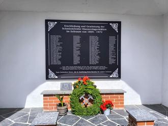 Am Schluss der Veranstaltung gab es die Einweihung der neuen Namenstafel auf der die Namen der Bergleute verewigt sind, die während ihrer Arbeit unter Tage ihr Leben verloren haben. Die alte Namenstafel war in die Jahre gekommen. Die Platte wellte sich an mehreren Stellen und einige Buchstaben waren schon nicht mehr deutlich zu lesen. Deshalb wurde aus Mitteln der Ortsteilzuwendung der Stadt Saalfeld, für den Saalfelder Ortsteil Schmiedefeld, eine neue Namenstafel angefertigt. Durch Recherchen im Reichmannsdorfer Kirchenbuch, durch Pfarrer i. R. Hans-Jürgen Lange, wurde noch eine Person ermittelt, die 1928 in der Schmiedefelder Eisenerzgrube ums Leben kam und auf der alten Namenstafel fehlte. Diese Person wurde auf der neuen Namenstafel ergänzt. Pfarrer i. R. Lange segnete die neue Tafel und sagte, "Obwohl er bis auf die letzten zwei Personen keinen der verstorbenen Bergleute kennt, weiß er zu jeder Person eine Geschichte aus dessen Leben." Man könnte darüber ein Buch schreiben.