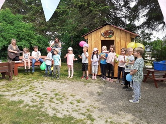 Die Kinder sind außer sich - denn die Eltern der Schulanfänger in diesem Jahr haben ein eigenes gestaltetes und gebautes Spielhäuschen als Andenken hinterlassen. Mit viel Liebe zum Detail und aus eigener Schaffenskraft machen sie sich mit diesem tollen Geschenk unvergessen. Die Kinder sind begeistert und glücklich über diese neue Installation.