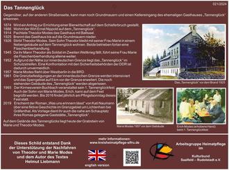 Die AG Heimatpflege im Kulturbund Saalfeld-Rudolstadt e. V. beabsichtigt am Rastplatz „Tannenglück“ zwischen Gräfenthal und Spechtsbrunn ein Informationsschild zur Geschichte des ehemaligen Gasthauses „Tannenglück“ aufzustellen.