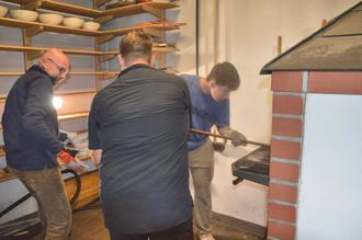 Johann Patzer hatte mir frühmorgens um 4:00 Uhr nochmal geholfen, den Backofen zu kontrollieren und noch ein paar Äste nachzulegen. Dank dieser Maßnahme gelang es uns, gegen 9:00 Uhr, als wir uns alle wieder am Backhaus trafen, den Ofen auf eine nahezu perfekte Temperatur zu bringen.