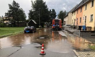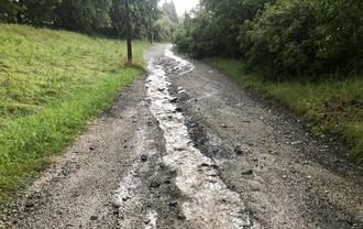 Leider wurden wir in den letzten Wochen zweimal von starken Unwettern heimgesucht. In kürzester Zeit fiel so viel Regen und Hagel, dass die vorhandene Kanalisation nicht in der Lage war diese Menge abzuleiten. Das Wasser lief die Straßen und unbefestigten Wege entlang und richtete großen Schaden an. Sogar die Feuerwehr wurde zum Einsatz in die Straße der Einheit gerufen. Nach den Unwettern versuchte der Bauhof die Schäden wieder in Ordnung zu bringen. Die Reparaturarbeiten dauern allerdings noch an, da es während der Bundesstraßenbaustelle schwierig für den Bauhof ist Material von Kleingeschwenda nach Schmiedefeld zu bekommen.