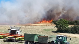 Am Vormittag des 15. Juli 2023 mähen zwei Mähdrescher Getreide auf mehreren Feldern. Es herrscht eine Temperatur von +30 °C, starker Wind dazu. Gegen 11.30 Uhr steigt plötzlich starker Rauch von einem Feld auf. Der Mähdrescher fährt schnell vom Feld, er hatte einen technischen Schaden.