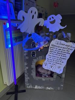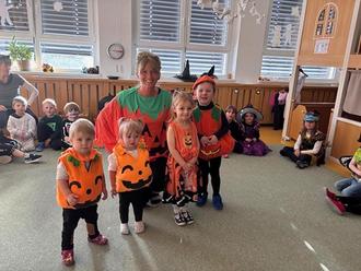 Natürlich durften tolle Kostüme, wie Kürbisse, Hexen, Geister, Skelette und Vampire nicht fehlen. Außerdem gab es ein kleines Buffet mit süßen und herzhaften Leckereien. Schon eine Woche zuvor verwandelte sich das Spatzennest in ein gespenstiges Gruselschloss.