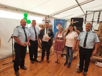 Wir nahmen die Einladung an und fuhren mit einer kleinen Delegation nach Bierdzany, einem Ortsteil von Turawa, wo das diesjährige Fest stattfand. Im Gepäck hatten wir neben den Präsenten von den Jugendfeuerwehren der ehemaligen Gemeinde Saalfelder Höhe auch ein Geschenk und Grußworte unseres Bürgermeisters Steffen Kania.