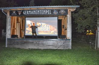 An der Vorführtechnik nahm inzwischen, von den Gästen nahezu unbemerkt, das Drama seinen Lauf. Marcs Anlage war für das Abspielen einer DVD konzipiert. Haikos Film befand sich allerdings auf einer Blu-Ray Disc. Umgekehrt hätte wahrscheinlich gut funktioniert; in dieser Konstellation allerdings ausgeschlossen. So holte Haiko von zu Hause einen Laptop als Abspielgerät, der dann wieder nicht mit Marcs Beamer kompatibel war. So wurde also auch noch ein anderer Beamer besorgt, der bei Haiko zu Hause stets gut mit dem Laptop zusammenarbeitete, sich hier aber erfolgreich sträubte, eine funktionierende Verbindung einzugehen. Und wenn dann schon mal ein Bild da war, fehlte zu allem Überfluss hartnäckig der Ton. Eine Situation, die man schon fast als Verzweiflung bezeichnen könnte. Alle bisher angewandten Tricks und Kniffe ermöglichten es nicht, den Film mit Bild und Ton vorzuführen. Inzwischen war es dunkel geworden, die Temperaturen waren immer noch recht angenehm, als Bäcker Andi erklärte, dass er denselben Film auch als DVD Version zu Hause habe. Bei dieser Information mag manch Einem tatsächlich ein wahrer Felsbrocken von der Seele gefallen sein. Schnell war die DVD geholt und ruckzuck flimmerte das Bild über die Leinwand. Am Ton mangelte es ebenfalls nicht mehr, so dass nun endlich, nach langen und stressigen Vorbereitungen die Vorstellung beginnen konnte. Für ein paar Gäste aus der LG standen Bänke bereit, wer ein Auto dabeihatte, zog sich dahin zurück.