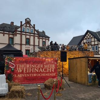 Der Samstag startete mit einer beliebten Attraktion der Thüringer Meer Weihnacht: Die Glühweinfahrt auf dem Bleilochstausee, dankenswerterweise durchgeführt von der Saaletal Kabinenschifffahrt. Mit festlich geschmücktem Schiff und warmem Glühwein an Bord, führte die Reise zu Wasser durch die winterliche Landschaft und stimmte die Teilnehmer auf den bevorstehenden Marktbummel ein.