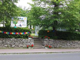 auf dem Zinzendorfplatz, bei Regen im Comeniuszentrum