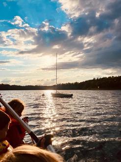 Als es schon dunkel wurde kamen wir zurück. Die nächste tolle und spannende Sache wartete auf uns: Wir übernachteten auf dem Hausboot vom SEZ. Auf diesem echten Boot hatte jeder sein eigenes Bett in einer Kajüte und wir machten es uns gemütlich. Mit Taschenlampen und Chips erzählten wir uns Geschichten und dann sind wir irgendwann eingeschlafen.