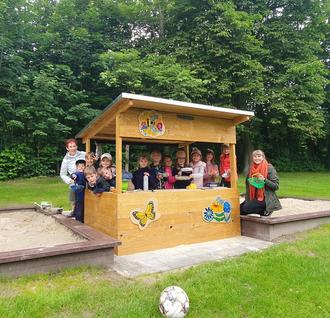 Da war die Freude bei allen Kindern groß, zumal unsere Eltern noch eine tolle, selbst gebaute Matschküche als Abschiedsgeschenk für uns spendeten, die gleich von allen Kindern eingeweiht wurde.