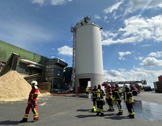 Alarmierung am Samstag, dem 25.07.2023 um 13:08 Uhr gemeinsam mit den Feuerwehren aus Bad Lobenstein und Friesau zu einem Schwelbrand in einem holzverarbeitenden Unternehmen in Friesau. Aus bisher unbekannten Gründen entzündeten sich Sägespäne, die in einem Silo zwischengelagert waren. Nach einer ersten Lageerkundung, bei der u. a. die Drehleiter der Feuerwehr Bad Lobenstein und Wärmebildkameras zum Einsatz kamen, entschied man sich dazu, das Silo schrittweise zu leeren und die Späne außerhalb des Silos abzulöschen. Hierfür kam, neben zwei Radladern, auch ein LKW mit Kippmulde zum Einsatz. Nach ca. 9 Einsatzstunden war das Spänesilo vollständig entleert und der Brand weitestgehend gelöscht. Die Restlöscharbeiten übernahm die Löschgruppe des Unternehmens.
