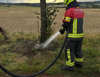 Alarmierung am 04.09.2025 um 17:10 Uhr zu einem Flächenbrand an der alten Alleenstraße zwischen Schönbrunn und Unterlemnitz. Vor Ort zeigte sich, dass ein Stück Wiese am Straßenrand auf einer Fläche von rund drei Quadratmetern brannte. Durch das schnelle Eingreifen von Passanten, die bereits begonnen hatten, das Feuer auszutreten, konnte eine weitere Ausbreitung verhindert werden. Gemeinsam mit der Feuerwehr Schönbrunn nahmen wir Löschmaßnahmen vor und kontrollierten die Fläche abschließend mit der Wärmebildkamera. Die ebenfalls alarmierte Feuerwehr Friesau konnte auf Anfahrt ihren Einsatz abbrechen. Vielen Dank für die gute Zusammenarbeit!