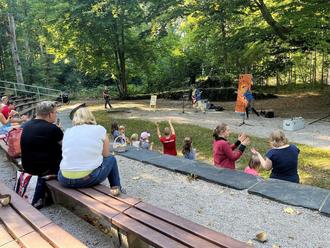 Am 20. September, dem Weltkindertag, fand auf der Naturbühne ein Konzert für Familien mit Kindern von 2 bis 10 Jahren statt. Die beiden Künstler vom Kindermusiktheater „Mimicus“ luden zu einer Inselreise ein, und die über 70 Besucherinnen ließen sich zum Mitsingen und Mittanzen animieren.