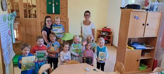 Die Kinder der Kita „Löwenzahn“ freuen sich gemeinsam mit Erzieherin Nadine Heinke (rechts) auf gemütliche Schmökerstunden in der bevorstehenden kalten Jahreszeit. Heike Richter von der Town & Country Stiftung übergab am 11. Oktober 2023 ein Schmökerhaus mit umfangreicher Literatur über die Themen Wald und Umweltschutz. Bildrechte: © Heike Richter