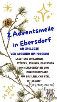 Nach einer erfolgreichen 1. Adventsmeile im vergangenen Jahr, veranstaltet der SV 1990 Ebersdorf/Thür. e.V. auch dieses Jahr wieder eine Veranstaltung in der Vorweihnachtszeit.