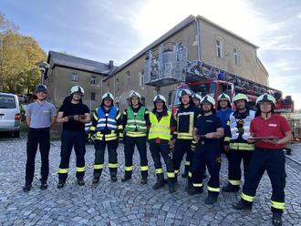 Die teilnehmenden Kameraden von den Feuerwehren aus der Bad Lobenstein und Gefell bestanden alle die abschließende Prüfung des Drehleiterlehrgangs in der Kurstadt.