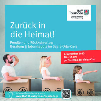 Sie möchten (wieder) in Thüringen arbeiten und leben? Sie können sich hier Ihre Zukunft vorstellen? Sie haben das tägliche pendeln satt? Sie wollen Ihre Freizeit lieber mit Ihrer Familie verbringen? Insbesondere Menschen, die bei diesen oder vergleichbaren Fragen ins Grübeln kommen, sind dazu eingeladen, am Samstag, 4. November, am Pendler- und Rückkehrertag teilzunehmen, zu dem die Thüringer Agentur Für Fachkräftegewinnung (ThAFF) mit Unterstützung des Landratsamtes Saale-Orla-Kreis einlädt.