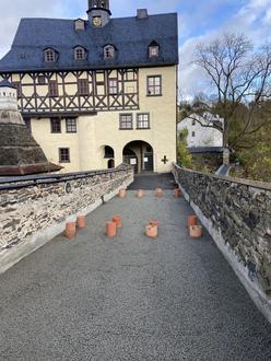 Die im April begonnene Sanierung der Wallgrabenbrücke auf Schloß Burgk wurde über die Sommermonate – der besucherstärksten Zeit des Museums – ausgesetzt. Seit dem 7. November werden die notwendigen Arbeiten zur Sanierung der Brücke fortgesetzt und der Einbau des historischen Pflasters wird bis Ende des Monats abgeschlossen. Damit wird auch die Begehbarkeit wiederhergestellt sein.
