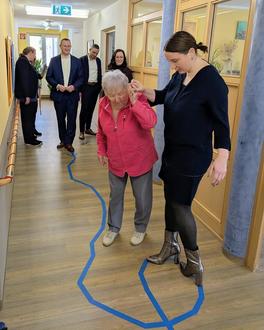 Der Ansatz des Projektes wurde an diesem Tag für die Gäste der Auftaktveranstaltung auch praktisch erlebbar. An verschiedenen Stationen eines Parcours, der vom Seniorenwohnen über das Pflegeheim bis zur Tagespflege führte, wurden aktivierende Übungen zur Kräftigung der Muskulatur sowie kognitive Lernspiele vorgestellt. Dieser Einblick verdeutlichte den Teilnehmern, wie die individuellen Fähigkeiten und die Mobilität der Bewohner und Klienten künftig systematisch gefördert werden, um die Selbstständigkeit zu erhalten, die Lebensqualität zu verbessern und ein würdevolles und selbstbestimmtes Altern bis zum Lebensende zu ermöglichen.