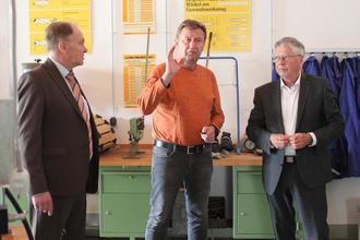 Abteilungsleiter Steffen Töpel (Mitte) informierte die Landräte Andreas Heller (links) und Thomas Fügmann über die Gegebenheiten am Berufsschulstandort Schleiz.