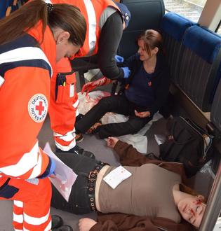 Für die Einsatzkräfte erwies sich das Sichtungstraining als lebensechte Extrem-Situation, die viel Wissen und Erfahrung, aber auch Nervenstärke und strukturiertes Handeln abverlangte. Die Art und Schwere der Verletzungen war in kurzer Zeit zu erfassen und an die weiteren Einsatzkräfte weiterzugeben.