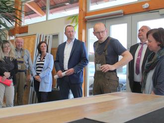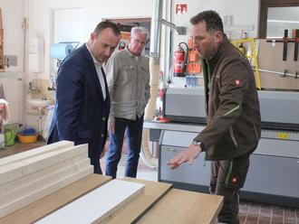 Die mit Abstand längste Tradition der vier Unternehmen, die Landrat Christian Herrgott besuchte, weist die T&R Militzer KG aus Schleiz vor, die als Tischlerei und Küchenstudio tätig ist. Inzwischen wird die Firma, deren Geschichte bis 1919 zurückreicht, durch Toni Militzer in vierter Generation geführt. Dass auch hier die Auftragslage gut ist, zeigt nicht zuletzt der aktuell in den Endzügen befindliche Anbau der Werkstatt. Passend dazu merkte dessen Vater und Vorgänge Ralf Militzer an, dass die Küche das Auto als Statussymbol in Deutschland abgelöst habe.