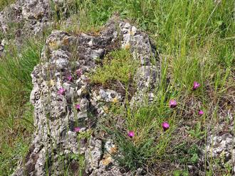 Trockenrasen mit Zechsteinfelskuppe und Karthäuser-Nelke in der Orlasenke.