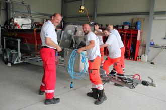 Die Aufgaben der Thüringer Einsatzkräfte waren hauptsächlich Lageerkundung und Einsatzleitung vor Ort, teilweise waren die Ostthüringer auch als Reserve für die Einsatzkräfte vor Ort eingeteilt. „Wir konnten konkret helfen, haben aber auch Erfahrungen in den Einsätzen dort gemacht, die für künftige Aufgaben dieser Art wichtig sein können“, erklärt Marcus Stephan von der Wasserwacht des Deutschen Roten Kreuzes im Saale-Orla-Kreis. Die Thüringer Fachkräfte waren mit eigenen Betreuungs- und Verpflegungseinheiten gekommen, mit Gerätewagen für die Wasserrettung sowie Rettungsbooten.