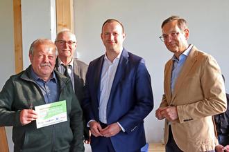 von rechts: Christoph Democh (TLLLR), Christian Herrgott und Thomas Franke bei der Übergabe der Regionalbudget-Förderungen an Werner Böhme aus Oberoppurg