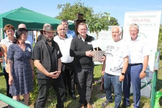 Ministerpräsident Bodo Ramelow (Bildmitte) besuchte gemeinsam mit Landrat Thomas Fügmann (rechts im Bild) den Regionalverband „Orlatal“ der Gartenfreunde in Pößneck.