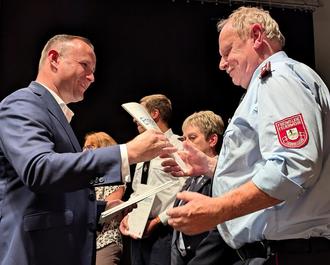 Zusätzlich zu den 55.220 Euro der Thüringer Ehrenamtsstiftung unterstützt auch die Sparkasse die Förderung des Ehrenamtes im Landkreis mit 4000 Euro. Der Vorstandsvorsitzende der Kreissparkasse Saale-Orla, Dirk Heinrich, machte am Beispiel seiner Heimatstadt Saalburg-Ebersdorf klar, was ohne die Ehrenamtlichen alles nicht mehr funktionieren würde oder nicht stattfinden könnte. Die Aufzählung reichte vom Fasching und von Ortsfesten wie dem Lichterfest über den Brandschutz durch die freiwilligen Feuerwehren bis hin zum organisierten Sport und der Wasser-Sicherheit auf dem Stausee. „Ehrenamt ist Engagement vor Ort und dafür wollen wir Ihnen herzlich Danke sagen. Sie alle machen das mit Herzblut und das verdient höchste Anerkennung“, erklärte Dirk Heinrich.