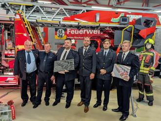 Stadtbrandmeister Uwe Eitner (2. v. links) zusammen mit Kameraden der Feuerwehr aus der tschechischen Partnerstadt Blovice. Seit 38 Jahren besteht eine enge Freundschaft zwischen den Wehren, gepflegt durch regelmäßige wechselseitige Besuche.