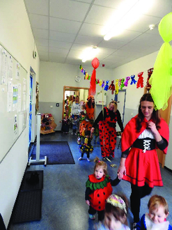 Am 16.02.23, dem „fetten Donnerstag“, stieg bei uns eine große Faschingsparty. Die Erzieherinnen und auch fast alle Kinder kamen verkleidet. Von Pippi Langstrumpf über Clowns bis hin zu Piraten, war alles dabei. Unser Morgen begann mit einem leckeren kunterbunten Faschingsfrühstück mit Laugenteilen, Brot, Muffins, Obst und Gemüse etc. Im Anschluss gab es in den Gruppen, für die Kinder, die mitmachen wollten, das Angebot mit Luftballons und Luftschlangen zu spielen oder auch zur Musik zu tanzen. Auch eine „Polonaise“ durch die Kita durfte natürlich nicht fehlen. Dabei hatten „Groß“ und „Klein“ eine Menge Spaß. Nach dem Mittagessen waren alle Kinder dann sehr erschöpft und hielten erstmal einen Mittagsschlaf, bis sie dann von ihren Erziehungsberechtigten abgeholt wurden.