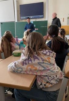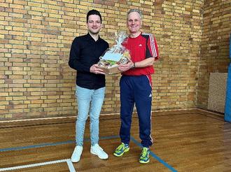 Bildunterschrift: Geschenkübergabe während des Sportunterrichts