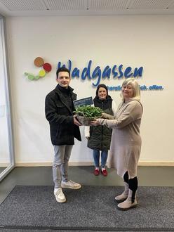 Übergabe der Vergiss-mein-nicht-Pflanzkörbe