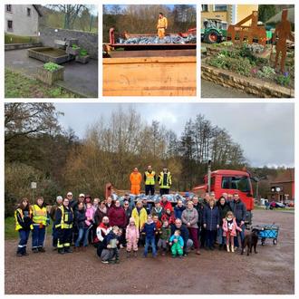 Um 12:00 Uhr trafen alle Helfer auf dem Marktplatz in Werbeln ein, um den zusammengetragenen Müll in dem von der Gemeinde bereitgestellten Container zu entsorgen. Anschließend wurde von allen Teilnehmern noch ein Foto gemacht.