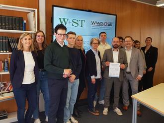 Zur Unterzeichnung des Kooperationsvertrags waren die W+ST-Geschäftsführer Julian Ferring und Carsten Paulus (Fotomitte mit Urkunde von l. nach r.) gekommen.