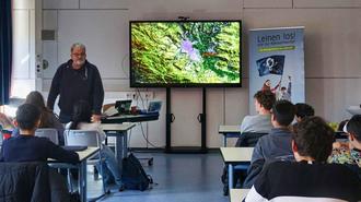 Was haben Handys, AirPods und Autos gemeinsam? Sie alle enthalten wertvolle Rohstoffe, deren Gewinnung und Verarbeitung ökologische und soziale Folgen hat. Die interaktive Veranstaltung „Rohstoffexpedition: Leinen los!“ nahm Schülerinnen und Schüler der 7. Klassen des Albert-Einstein-Gymnasiums mit auf eine faszinierende Reise um die Welt – direkt aus dem Klassenzimmer. Passend zum Weltrecycling-Tag am 18. März 2025 zeigt der Umweltpädagoge und Astronom Michael Geisler von Geoscopia, welche Auswirkungen unser Rohstoffverbrauch hat – und welche Alternativen es gibt.