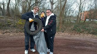 Schüler Berufsfachschule und der Berufsschule sammeln fleißig Müll.