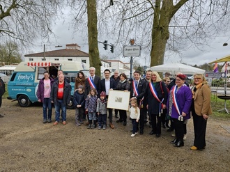 Mit dem Arquer Bürgermeister Bénoît Roussel und Kindern in der Abenteuerinsel