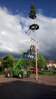 Der kleine Umzug startet um 17.00 Uhr am Feuerwehrgerätehaus und begleitet den Maibaum zum Marktplatz. Dort wird er unter den Augen der Zuschauer fachgerecht aufgestellt und die Wappen der Ortsvereine werden aufgehängt.