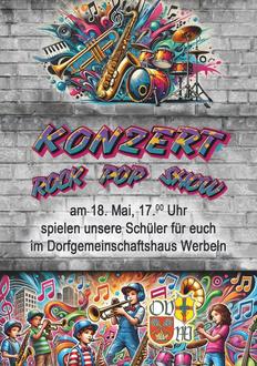 Am 18.05.2025 spielen unsere beiden Schülerochester des Orchestervereins Wadgassen e. V. ein Rock, Pop Show Konzert im Dorfgemeinschaftshaus in Werbeln und Sie (ihr ihr) seid dazu herzlich eingeladen. Unter der Leitung von Sarah und Julian Jakobs gibt es moderne Klänge, die neusten Hits aus dem Radio und Musik aus großen Musicals auf die Ohren. Der Eintritt zu diesem etwa einstündigen Konzert ist frei!