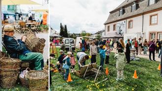 Korbflechter & spielende Kinder auf dem Frühlingsmarkt in Wadgassen