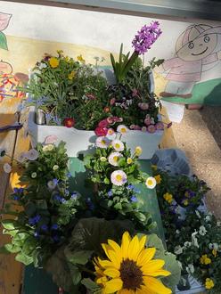 Besonders haben wir uns über die Blumenspenden der Eltern gefreut, um unsere Blumenkübel neu damit zu bestücken.